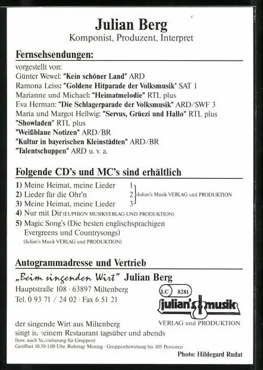 AK Musiker Julian Berg mit Gitarre, Autograph