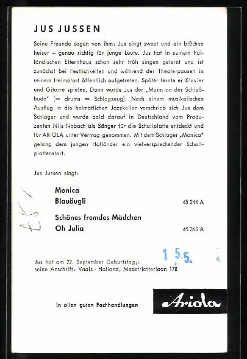AK Musiker Jus Jussen im Portrait, Ariola, Autograph