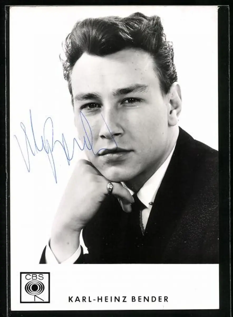 AK Musiker Karl-Heinz Bender im schwarzen Anzug, Autograph