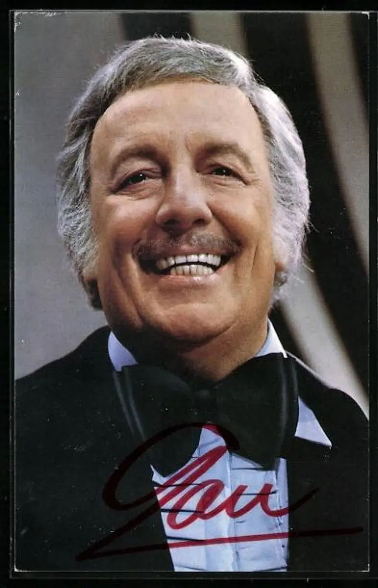 AK Musiker Lou van Burg, Portrait im Anzug mit Fliege, Autograph