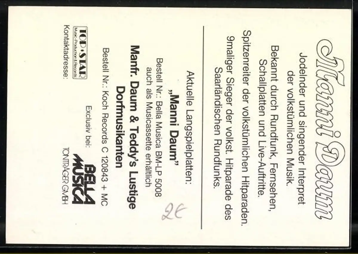 AK Musiker Manni Daum auf einer Wiese mit Gitarre, Autograph