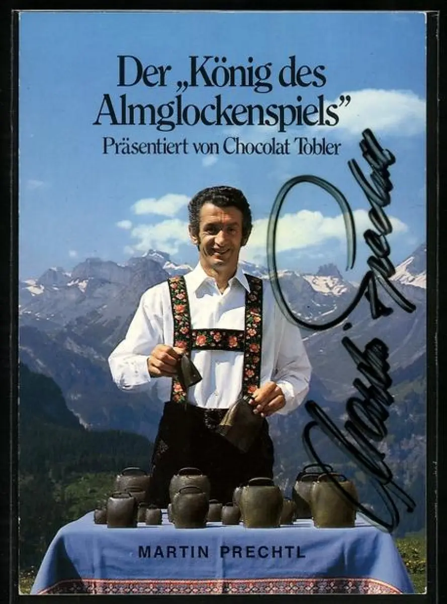 AK Musiker Martin Prechtl in Tracht mit Glocken, Autograph