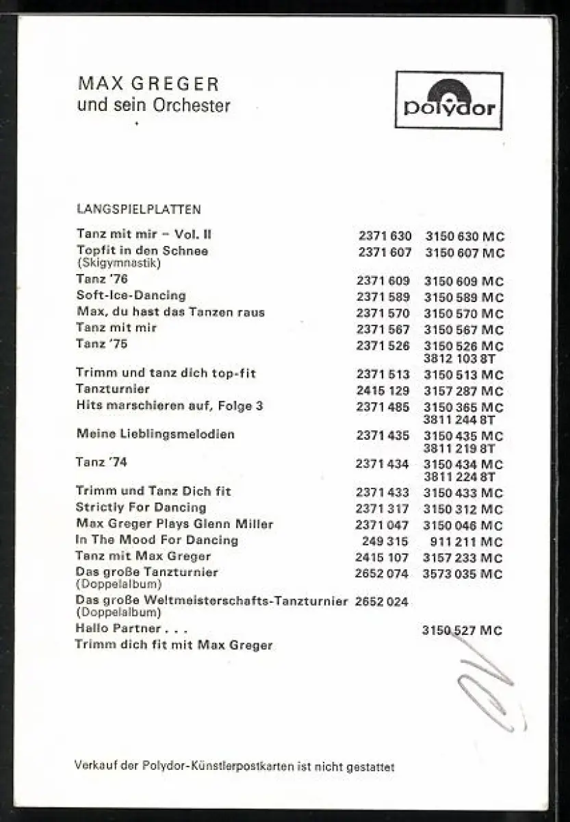 AK Musiker Max Greger mit der Jacke über der Schulter, Autograph