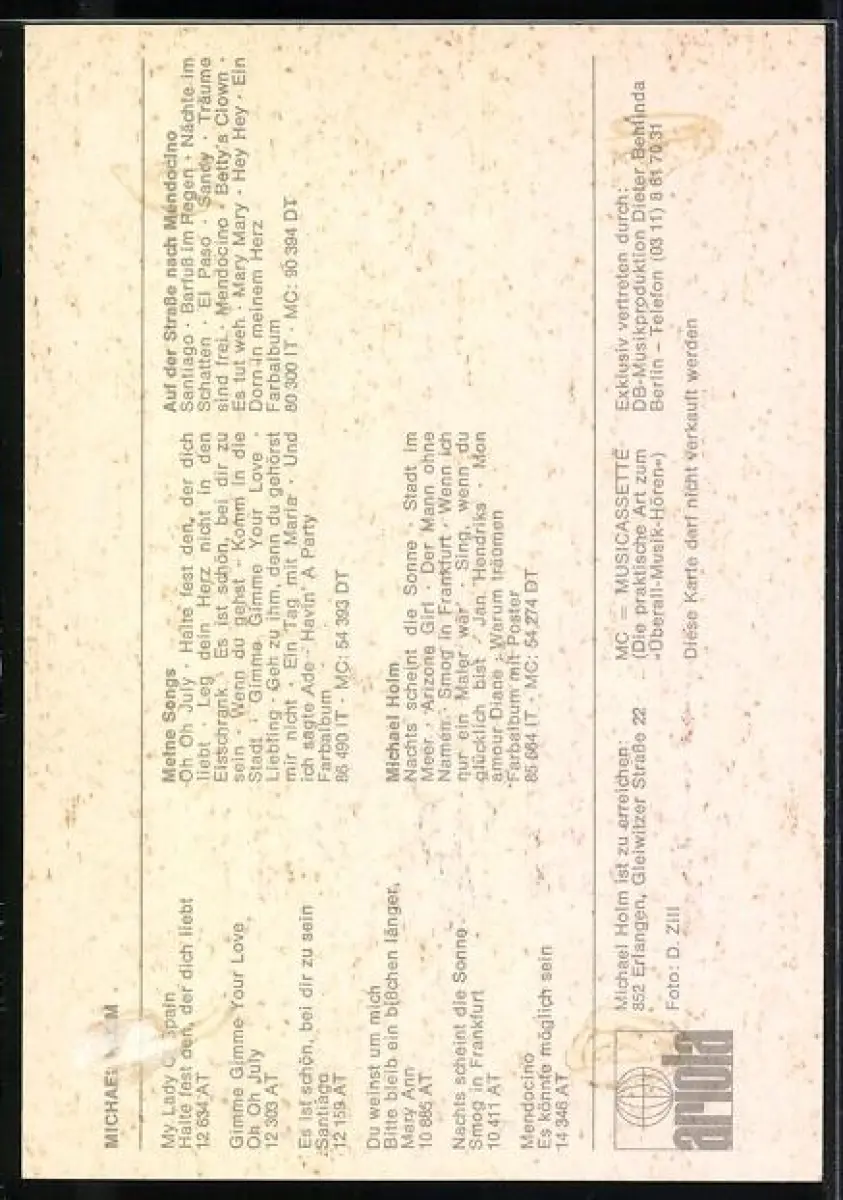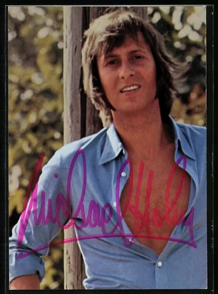 AK Musiker Michael Holm in blauem Hemd, Autograph