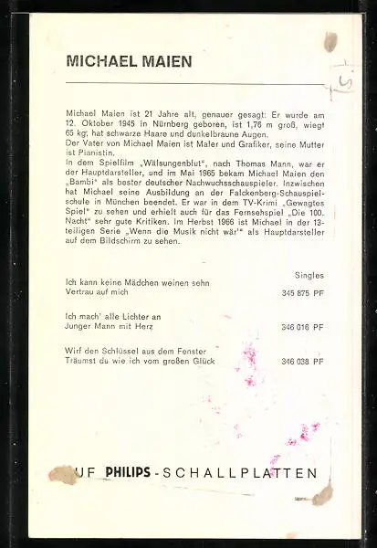 AK Musiker Michael Maien schaut seitlich, Autograph