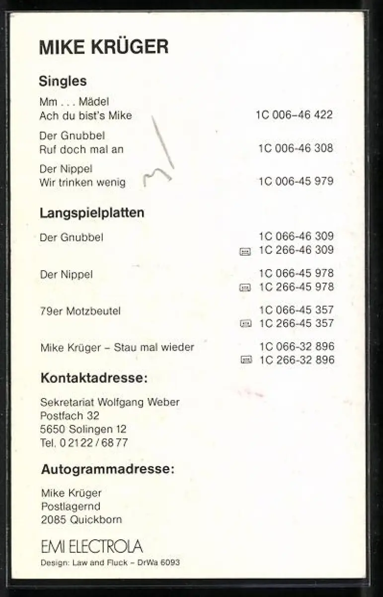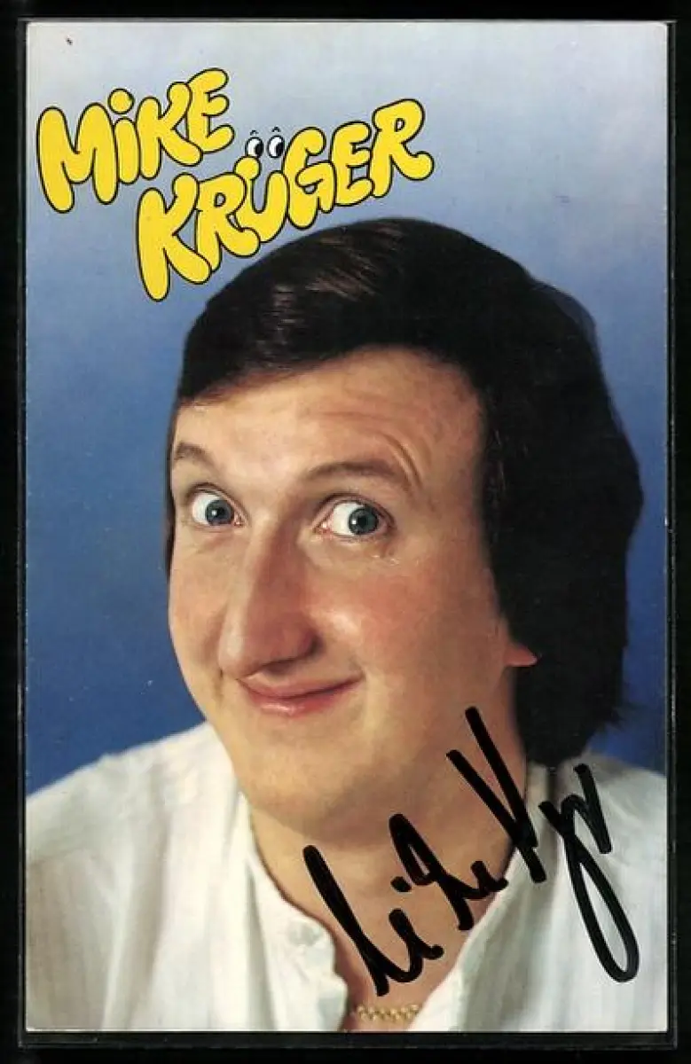 AK Musiker Mike Krüger in die Kamera blickend, Autograph