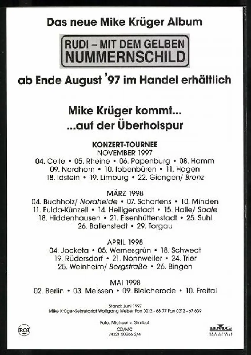 AK Musiker Mike Krüger mit Gitarre vor einem Wohnwagen, Autograph