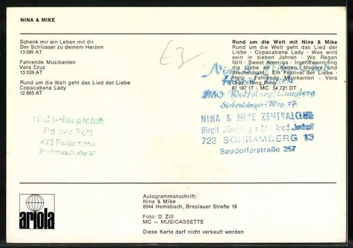 AK Musiker Nina & Mike im Porträt mit Autographen