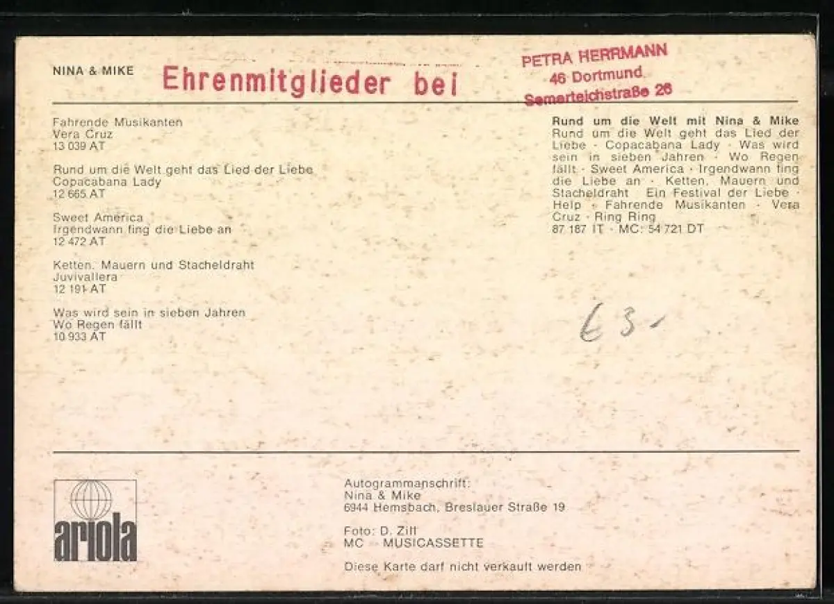 AK Musiker Nina & Mike lächelnd im Porträt, Autograph