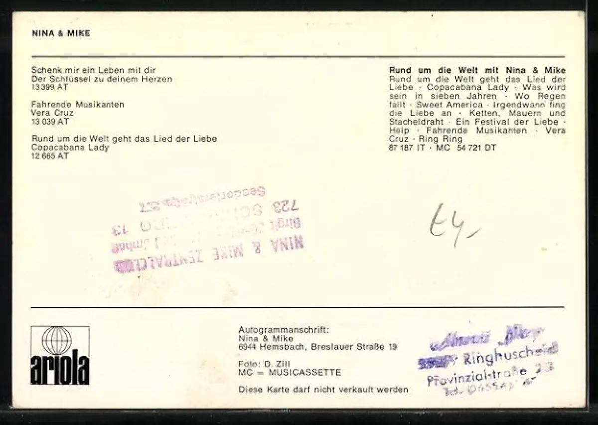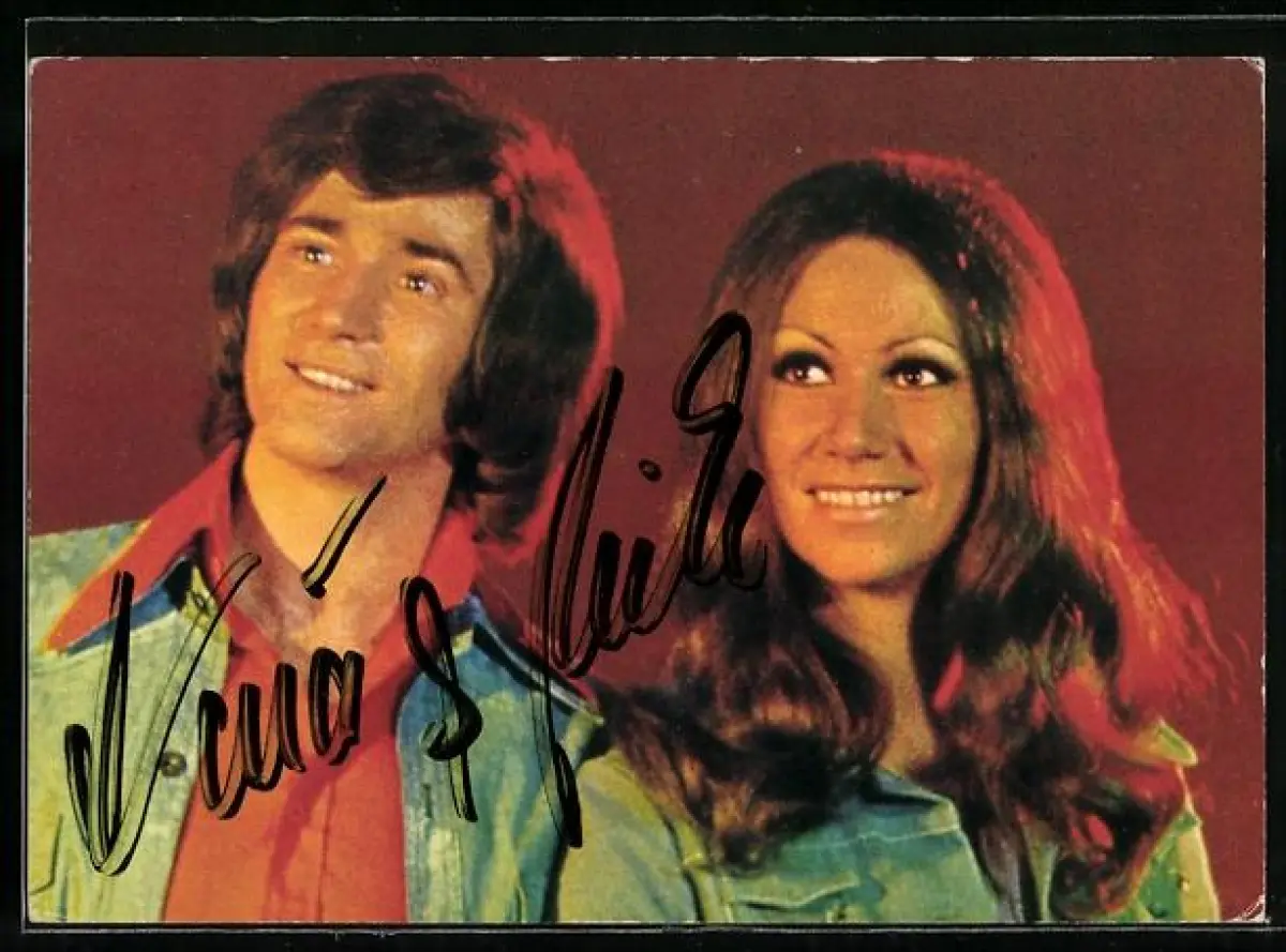 AK Musiker Nina & Mike lächelnd im Porträt, Autographen