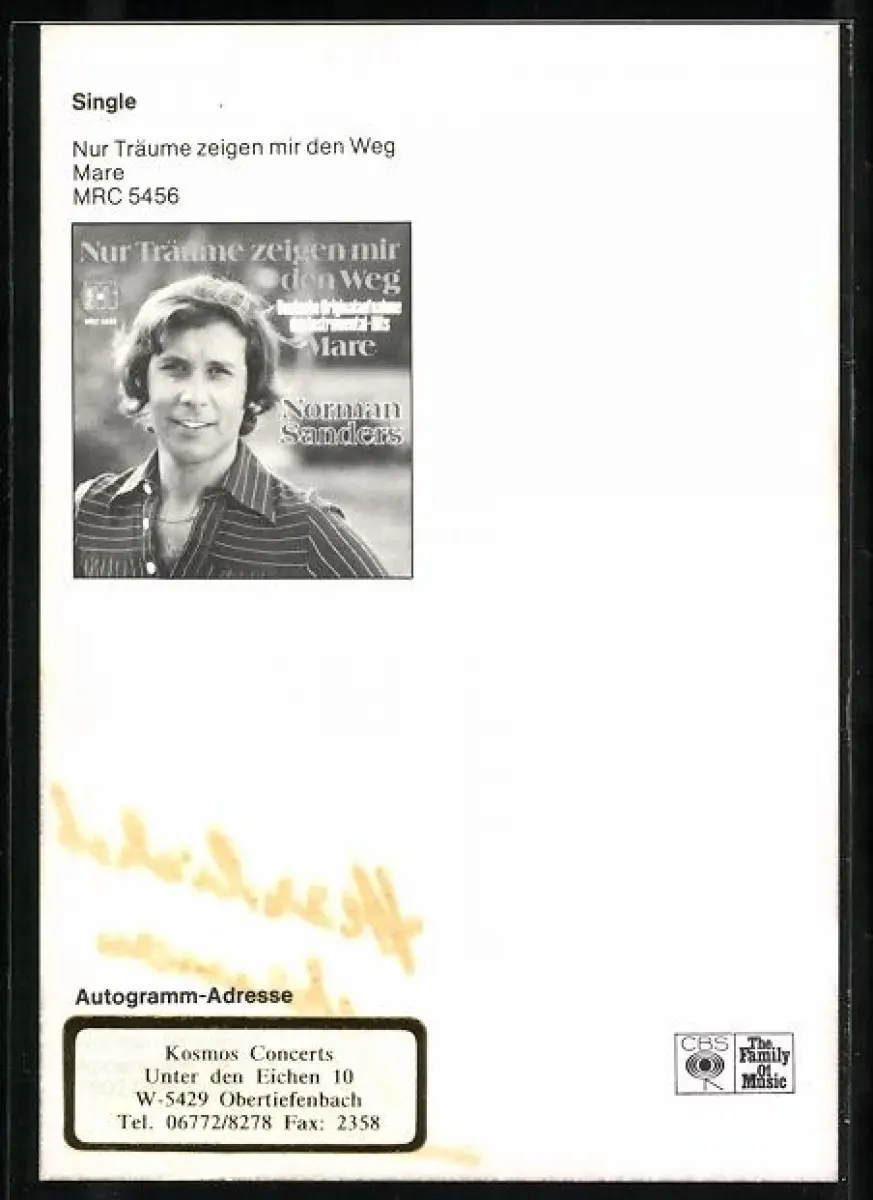 AK Musiker Norman Sanders in gestreiftem Hemd mit Autograph