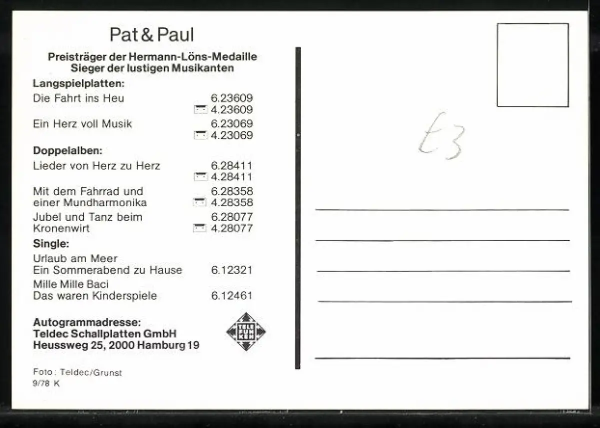 AK Musiker Pat & Paul mit Gitarre im Garten, Autographen
