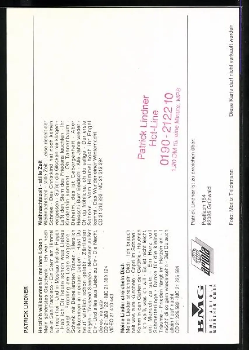 AK Musiker Patrick Lindner lächelnd im Porträt, Autograph