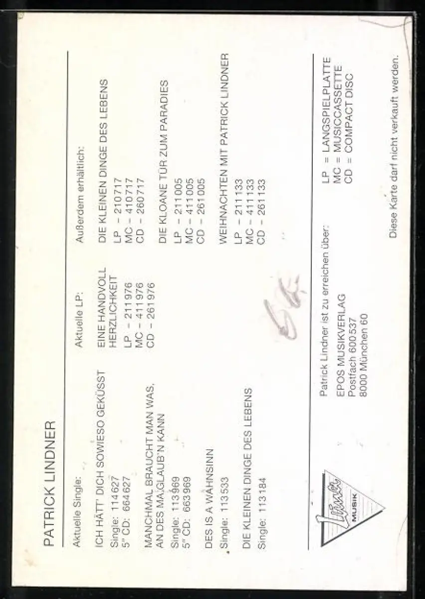 AK Musiker Patrick Lindner lächelnd im Porträt, Autograph
