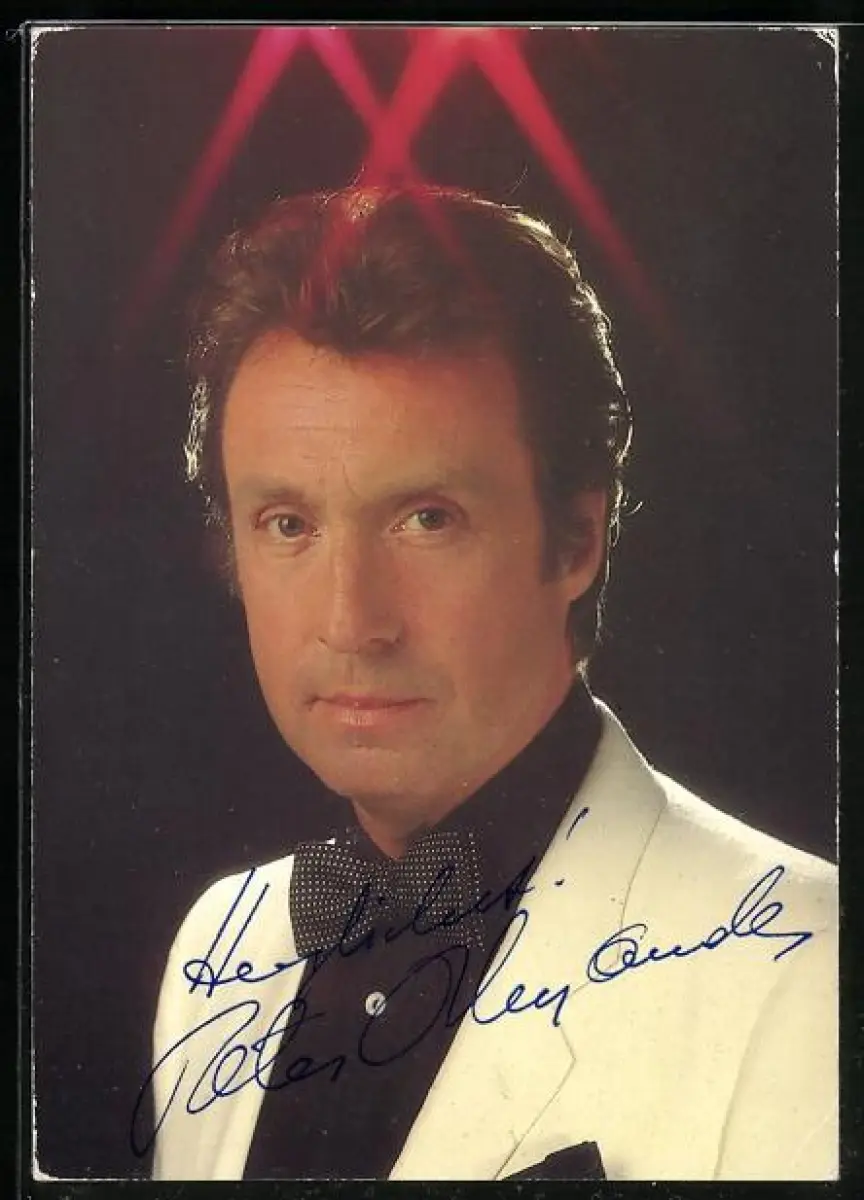 AK Musiker Peter Alexander im Anzug mit Fliege, Autograph