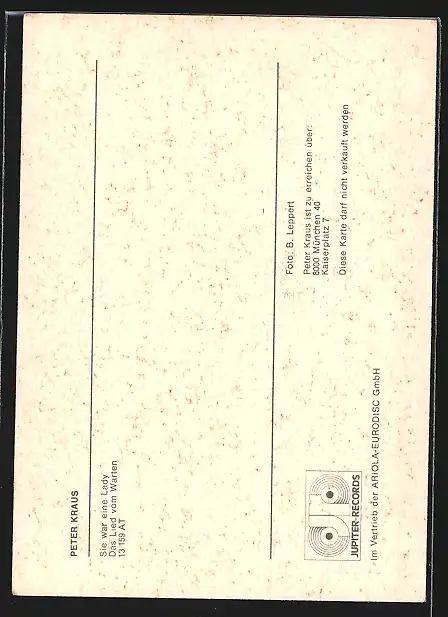 AK Musiker Peter Kraus in weisser Jacke, Autograph