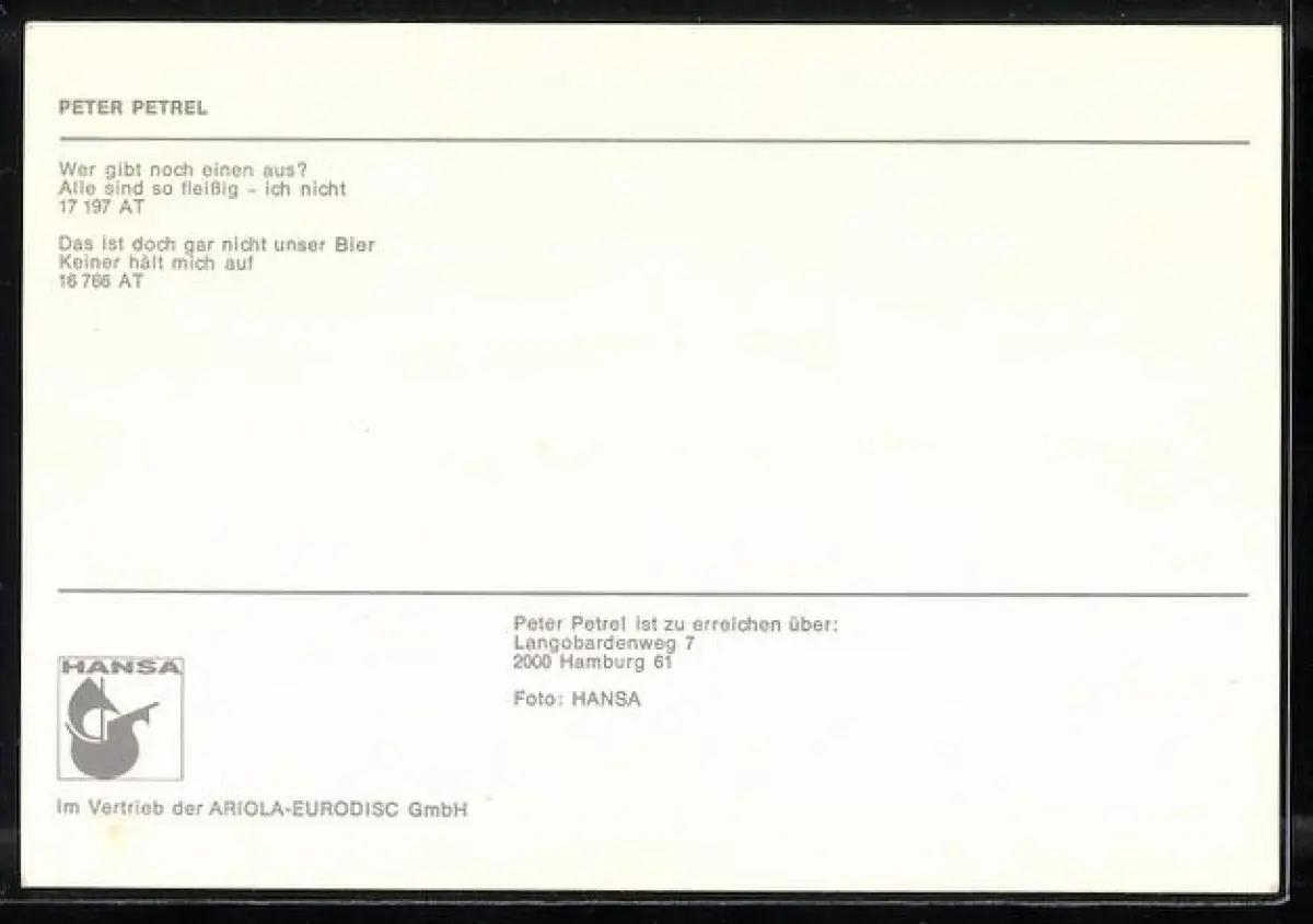 AK Musiker Peter Petrel mit einem Bierkasten auf einer Wiese, Autograph