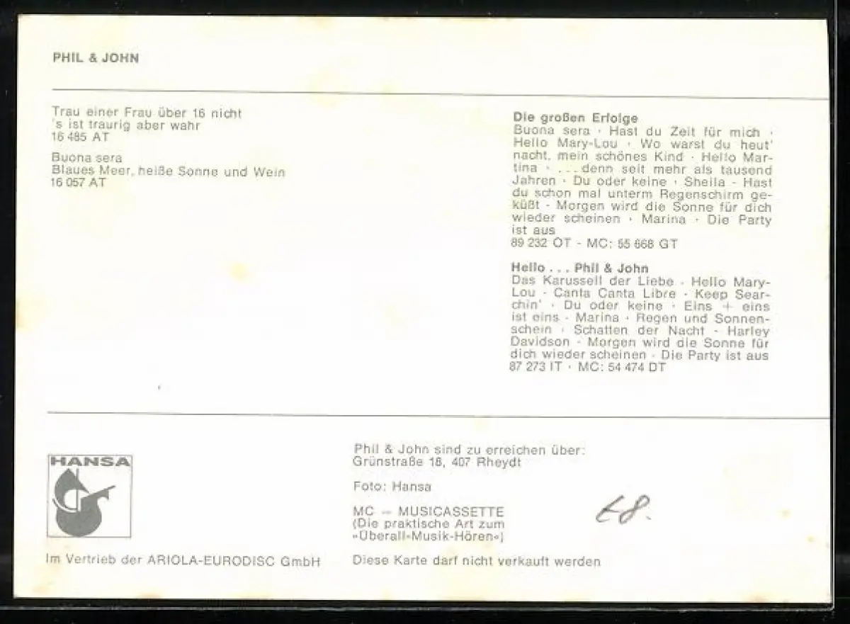 AK Musiker Phil & John auf einer Wiese liegend, Autograph