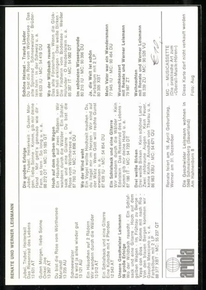 AK Musiker Renate und Werner Leismann auf einem Feld, Autograph