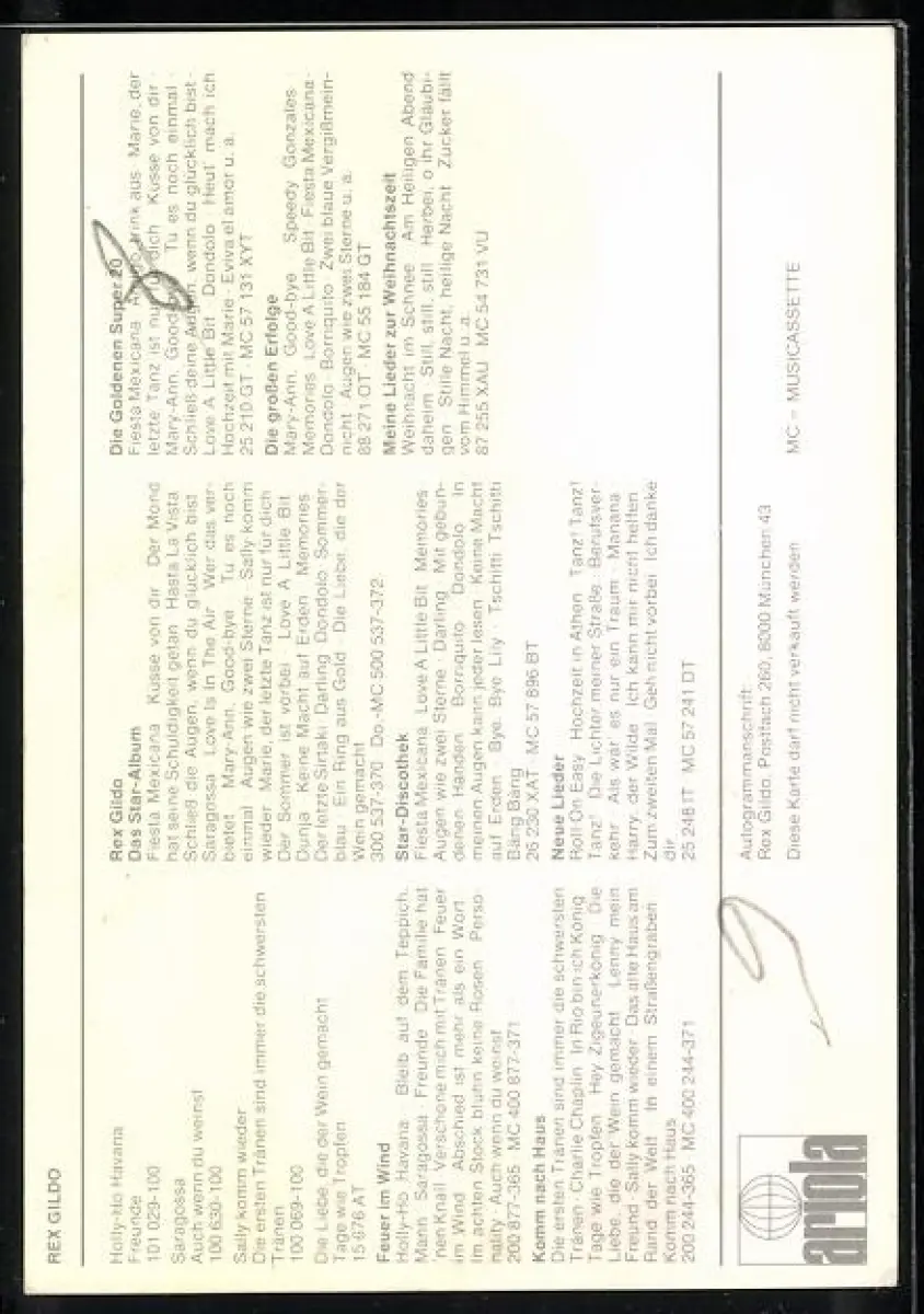 AK Musiker Rex Gildo im Hawaiihemd, Autograph