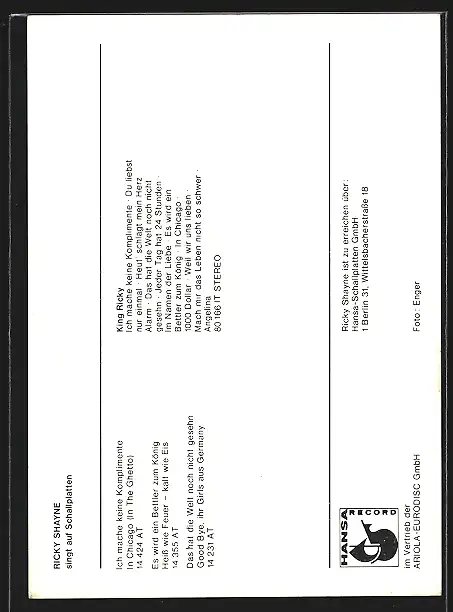 AK Musiker Ricky Shayne raucht eine Zigarette, original Autograph