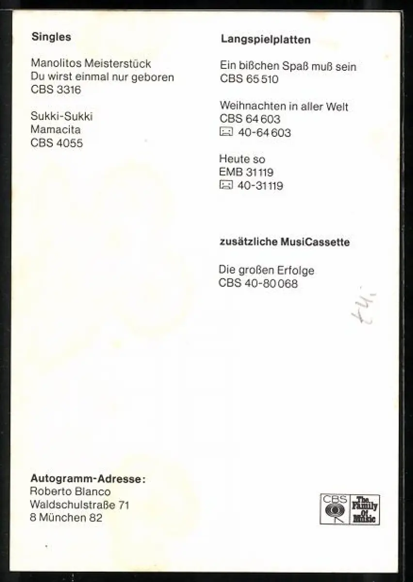 AK Musiker Roberto Blanco im bunten Hemd, Autograph