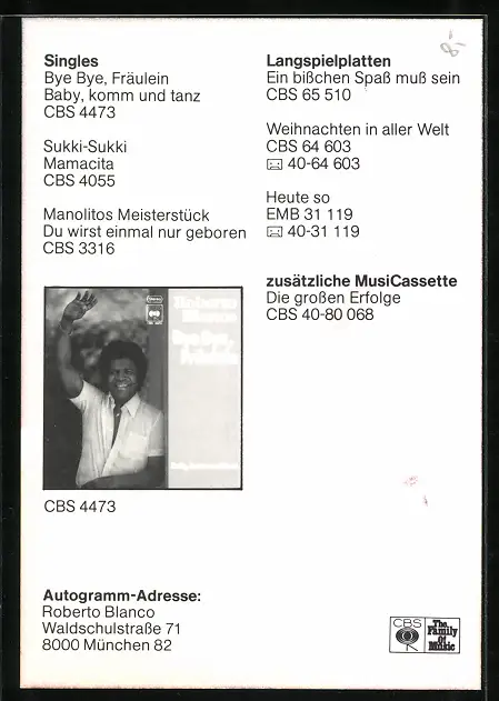 AK Musiker Roberto Blanco mit Autograph
