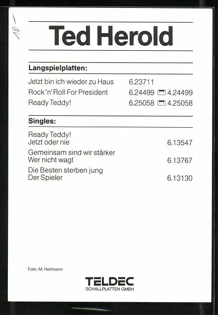 AK Musiker Ted Herold in Rocker-Positur, Autograph