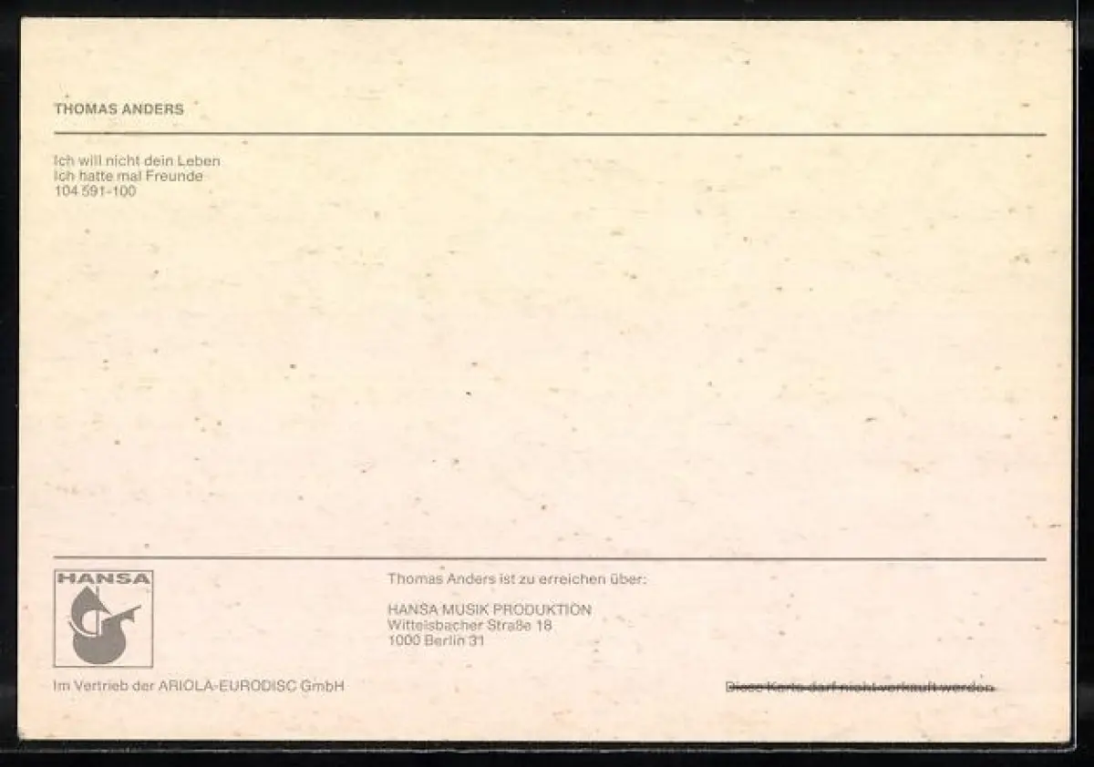 AK Musiker Thomas Anders mit nachdenklichem Blick, Autograph