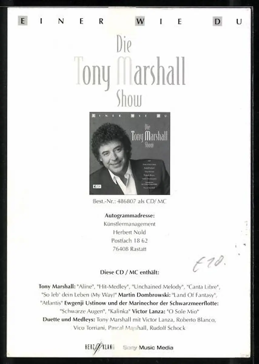 AK Musiker Tony Marshall im Anzug, Autograph