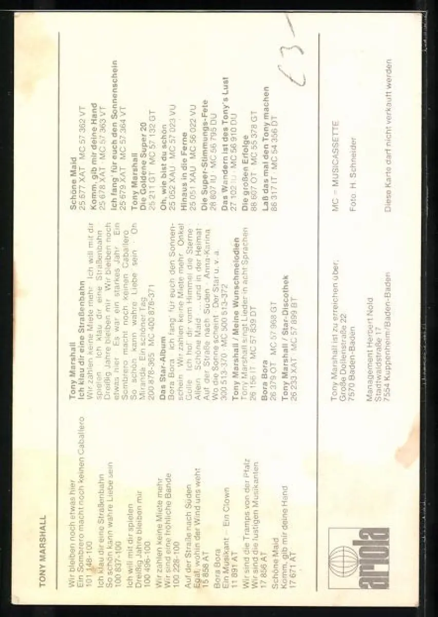 AK Musiker Tony Marshall im Anzug mit Fliege, Autograph