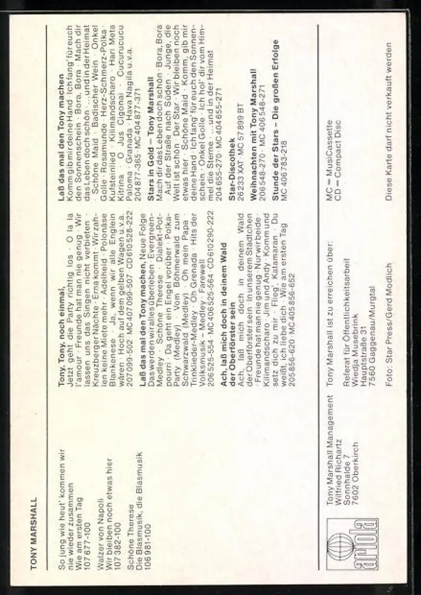 AK Musiker Tony Marshall in blau-weisser Jacke, Autograph