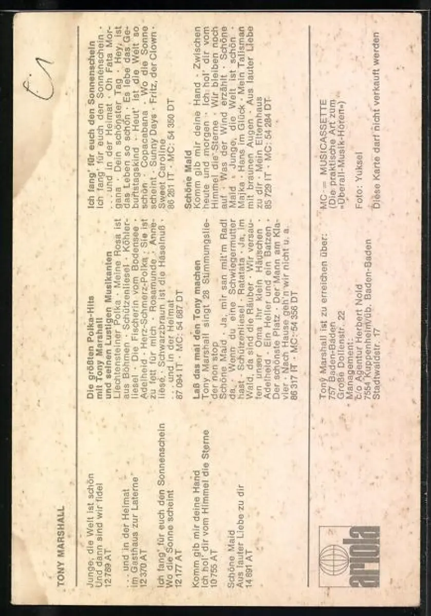 AK Musiker Tony Marshall lächelt in die Kamera, Autograph