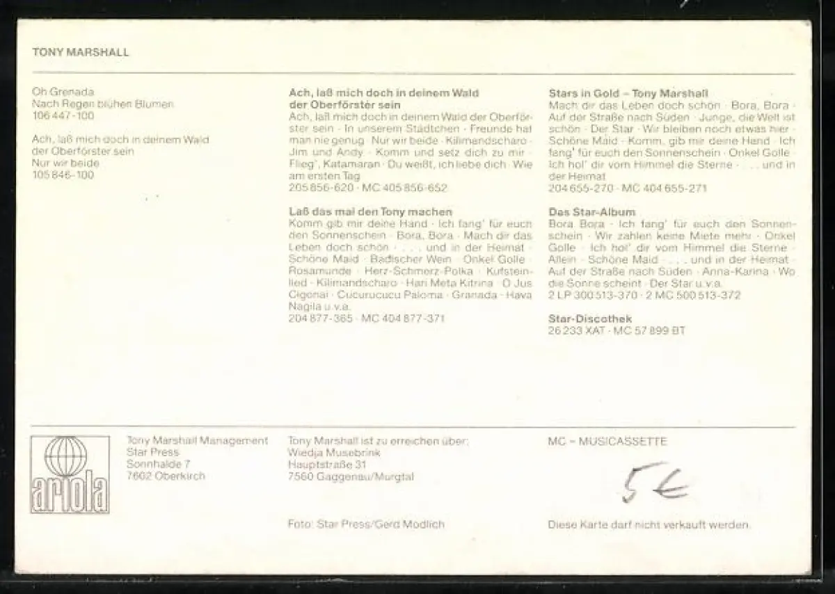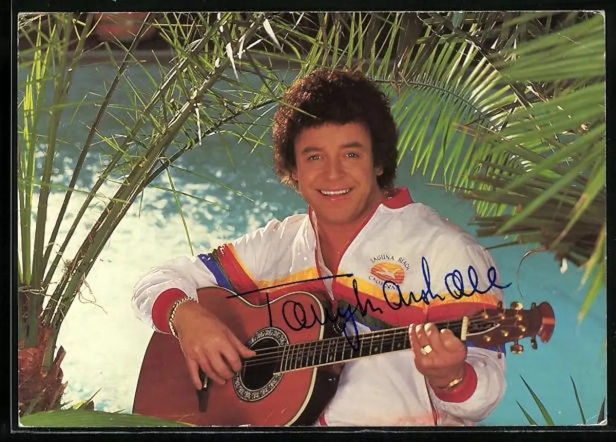 AK Musiker Tony Marshall mit Gitarre unter Palmen, Autograph