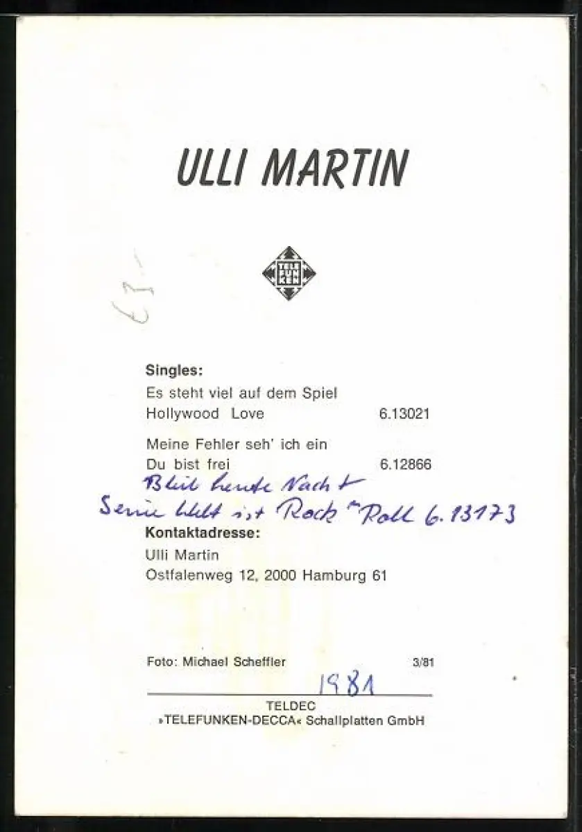 AK Musiker Ulli Martin mit Krawatte, Autograph