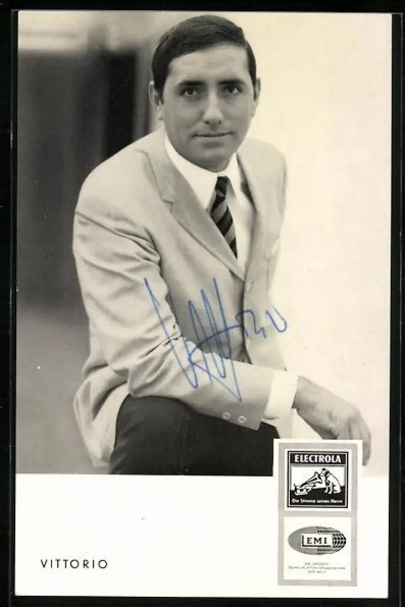 AK Musiker Vittorio, Portrait im hellen Anzug, Autograph