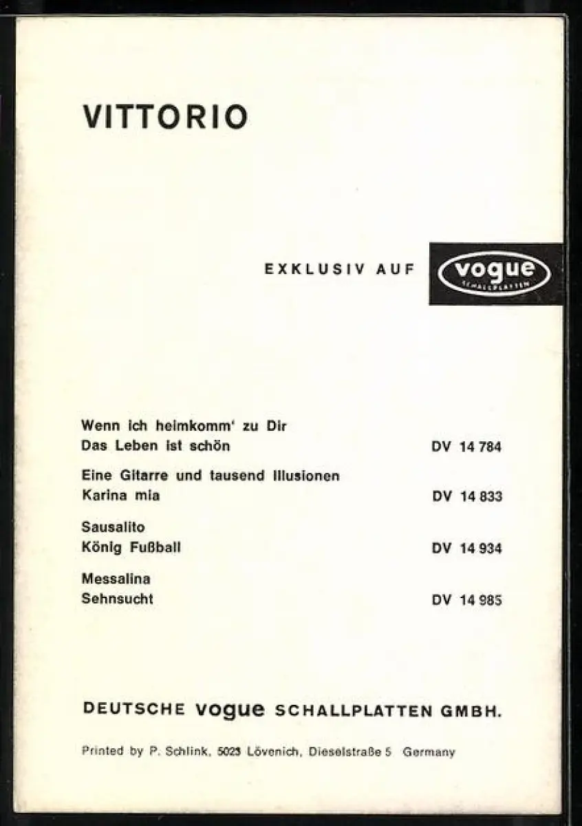 AK Musiker Vittorio in die Kamera blickend, Autograph
