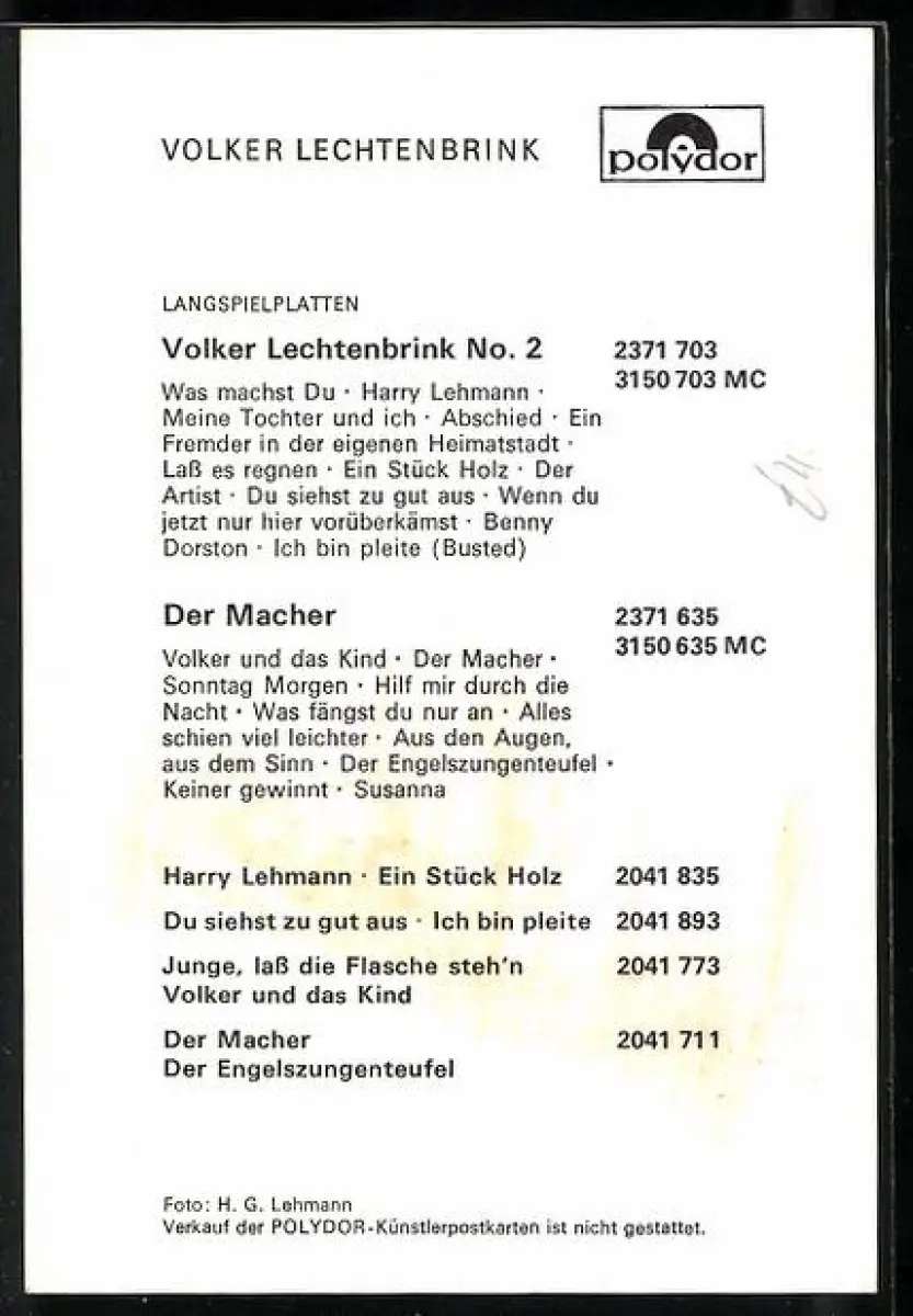AK Musiker Volker Lechtenbrink mit Zigarette, Autograph