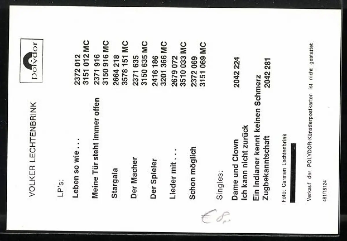 AK Musiker Volker Lechtenbrink vor einem Baum portraitiert, Autograph