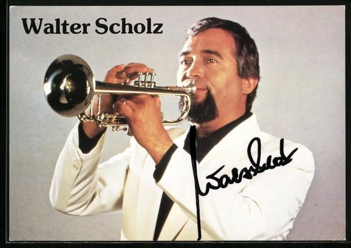 AK Musiker Walter Scholz mit Trompete, Autograph