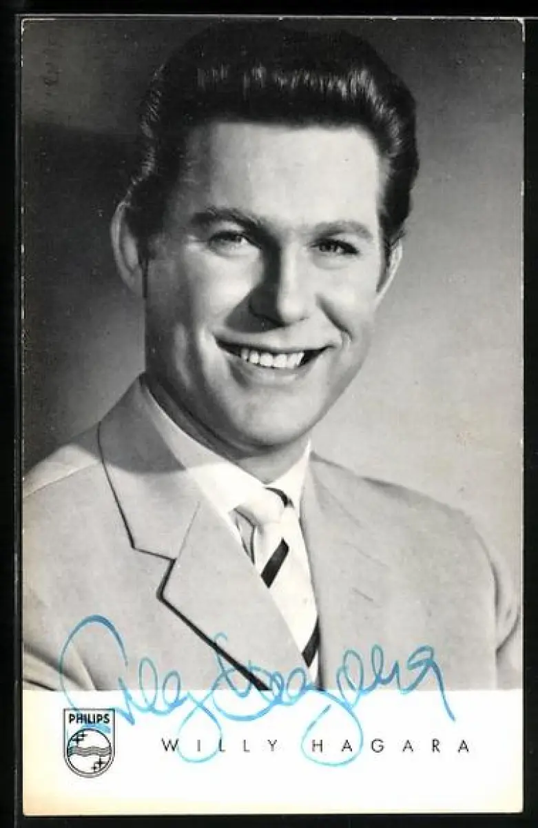 AK Musiker Willy Hagara lächelnd im Porträt, Autograph
