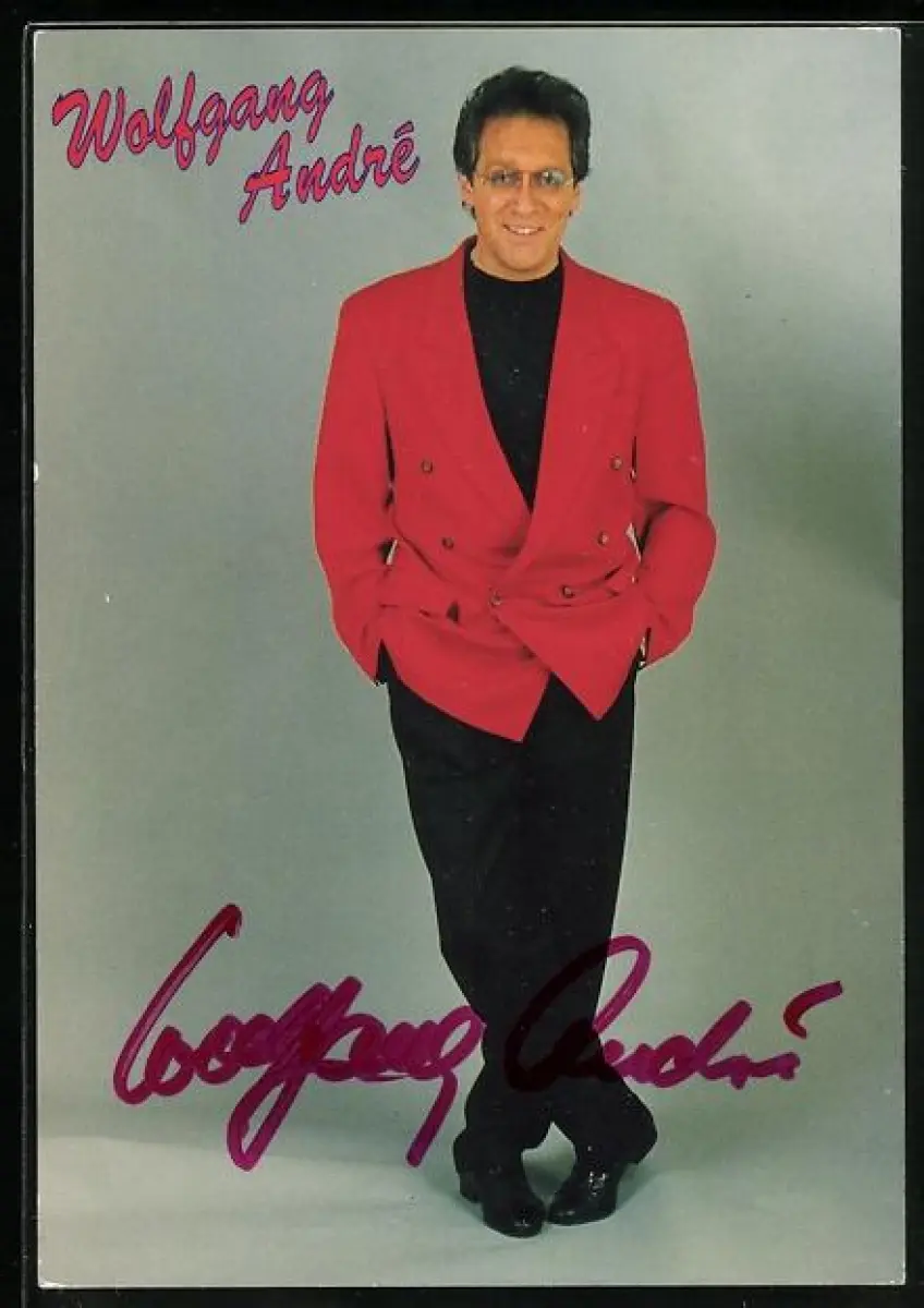 AK Musiker Wolfgang André in roter Anzugjacke, Autograph