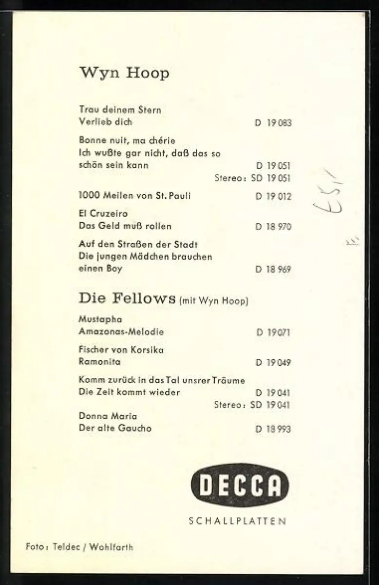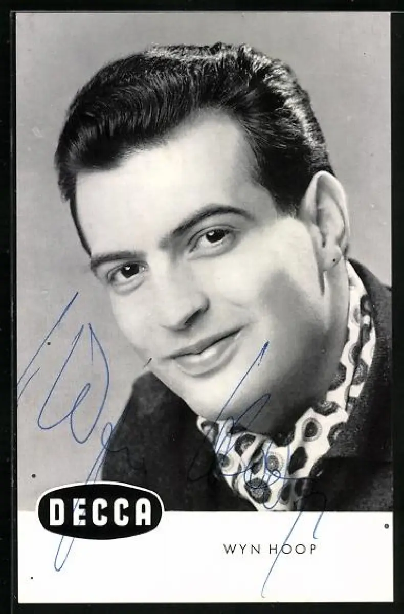 AK Musiker Wyn Hoop lächelnd im Porträt mit Autograph