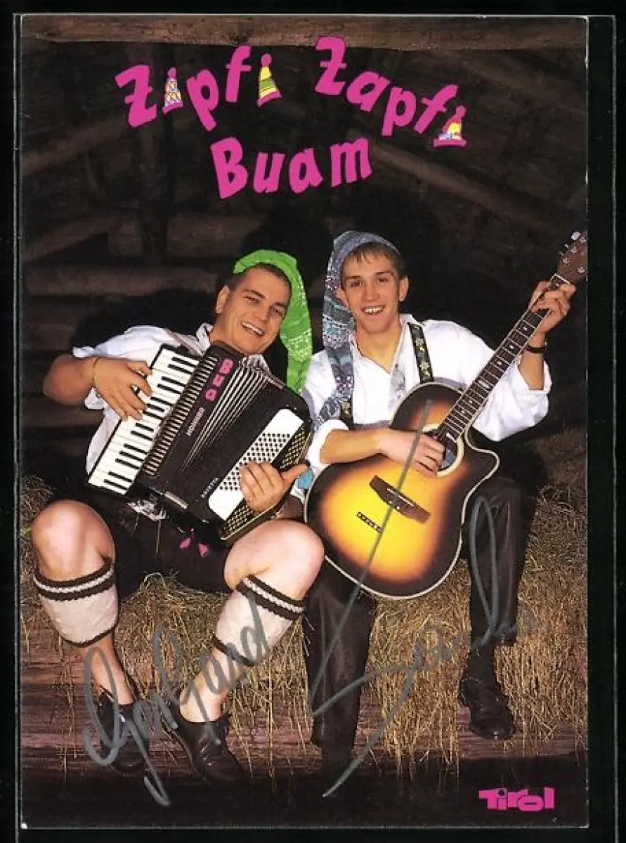 AK Musiker Zipfi Zapfi Buam in Trachten, Autographen