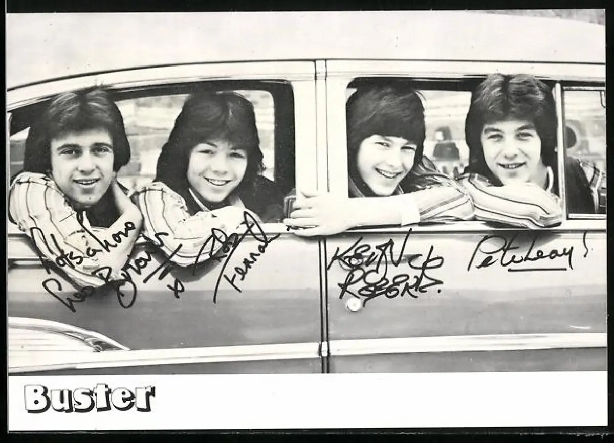 AK Musiker der Band Buster im Auto, Autogramme