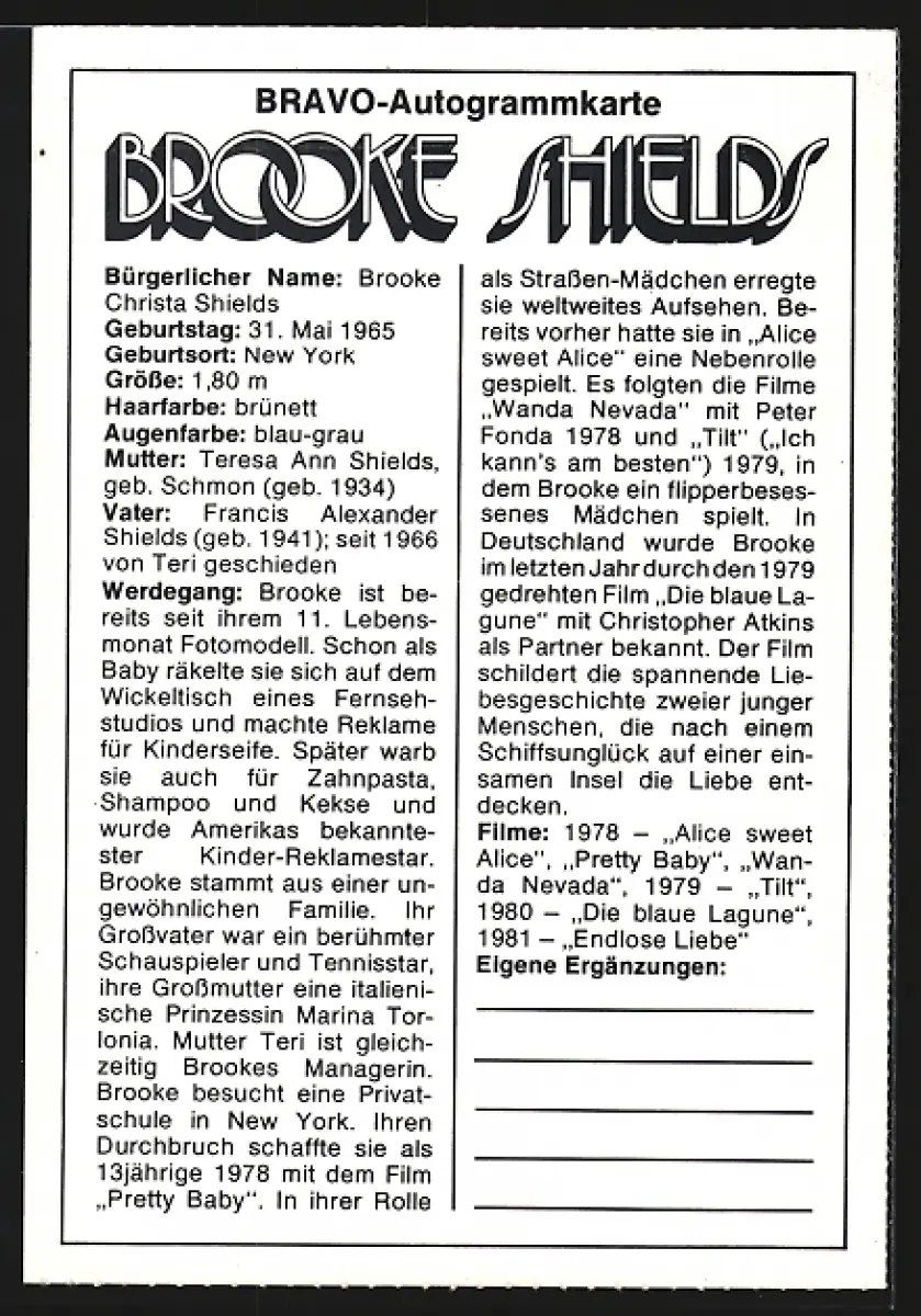 AK MusikerBrooke Shields in die Kamera lächelnd mit gedruckten