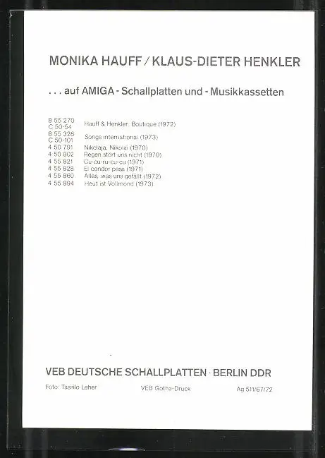 AK Musikerduo Monika Hauff & Klaus-Dieter Henkler, mit Autograph