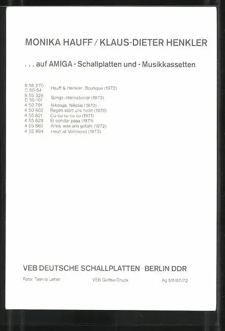 AK Musikerduo Monika Hauff & Klaus-Dieter Henkler, mit Autograph