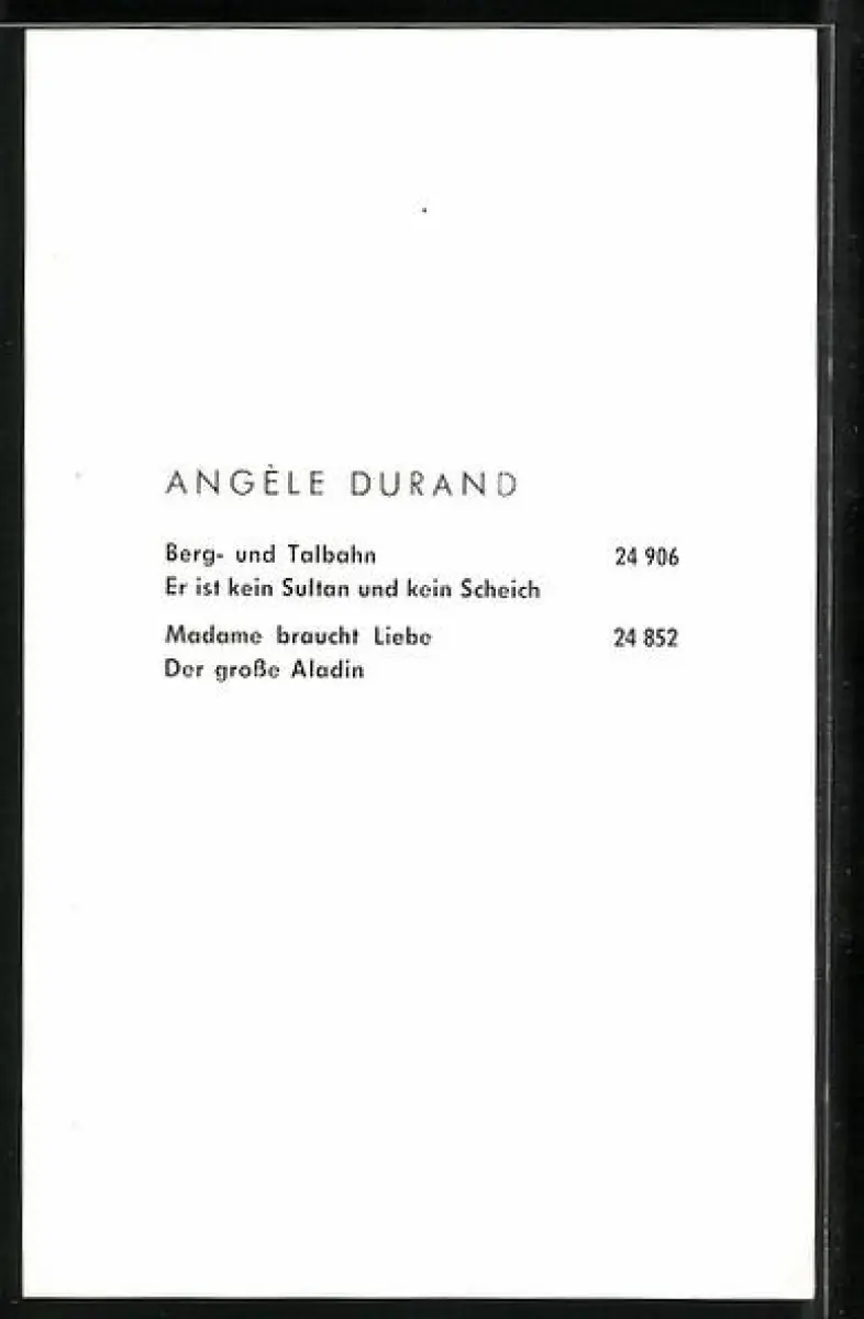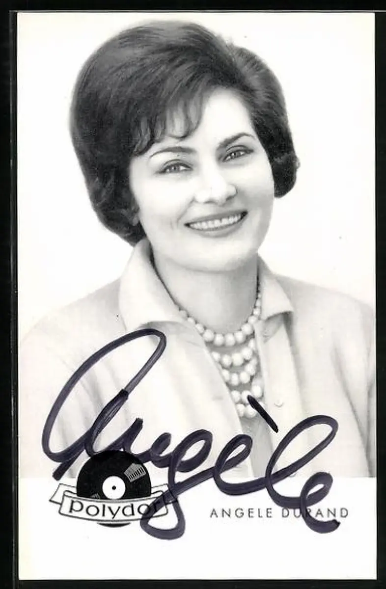 AK Musikerin Angèle Durand lächelnd im Porträt, Autograph