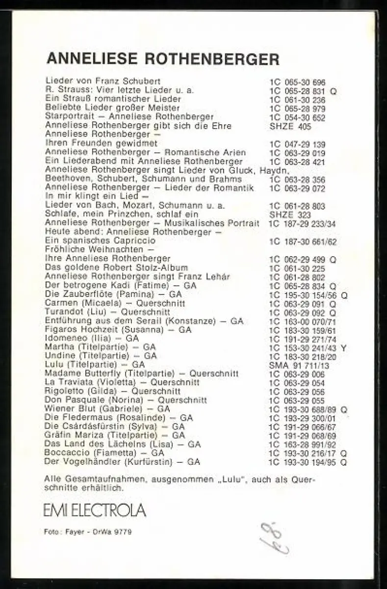 AK Musikerin Anneliese Rothenberger mit Perlenkette, Autograph